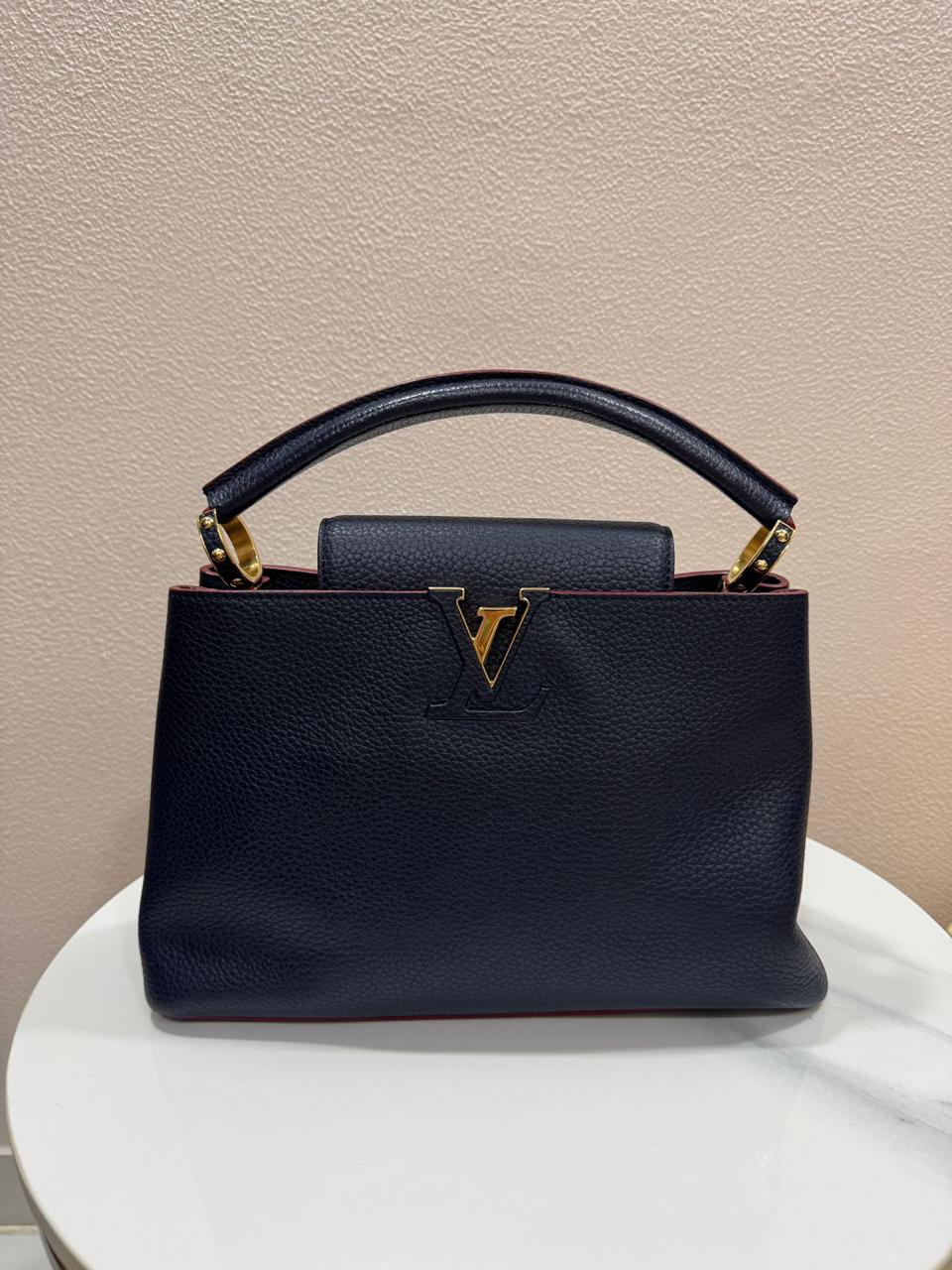 Named for the Rue des Capucines in Paris, where Louis Vuitton opened for business in 1854, the Capucines MM handbag was first introduced in 2013. Superbly crafted from full-grain Taurillon leather, it features a flap which can be worn two ways: outside to reveal a Monogram Flower, or inside to display the leather-wrapped LV Initials. Light enough to carry all day long, by hand, on the shoulder or worn cross-body with the detachable strap.